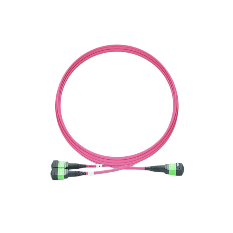 NVIDIA/Mellanox MFP7E20-N010 is compatible with 10m MPO-12 APC (female) to 2 MPO-4 APC (female) magenta OM4 polarity B LSZH multimode premium branch patch cord, 3mm