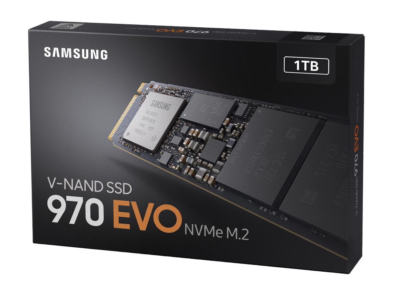 SAMSUNG 970 EVO M.2 2280 1TB PCIe Gen3. X4, NVMe 1.3 64L V-NAND 3-bit MLC Internal Solid State Drive (SSD) MZ-V7E1T0BW