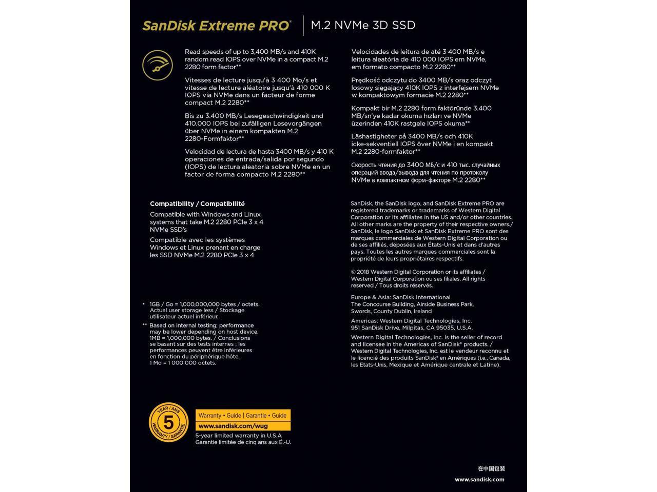 SanDisk Extreme PRO 500GB PCIe 3.0 x4 M.2 2280 Internal Solid State Drive