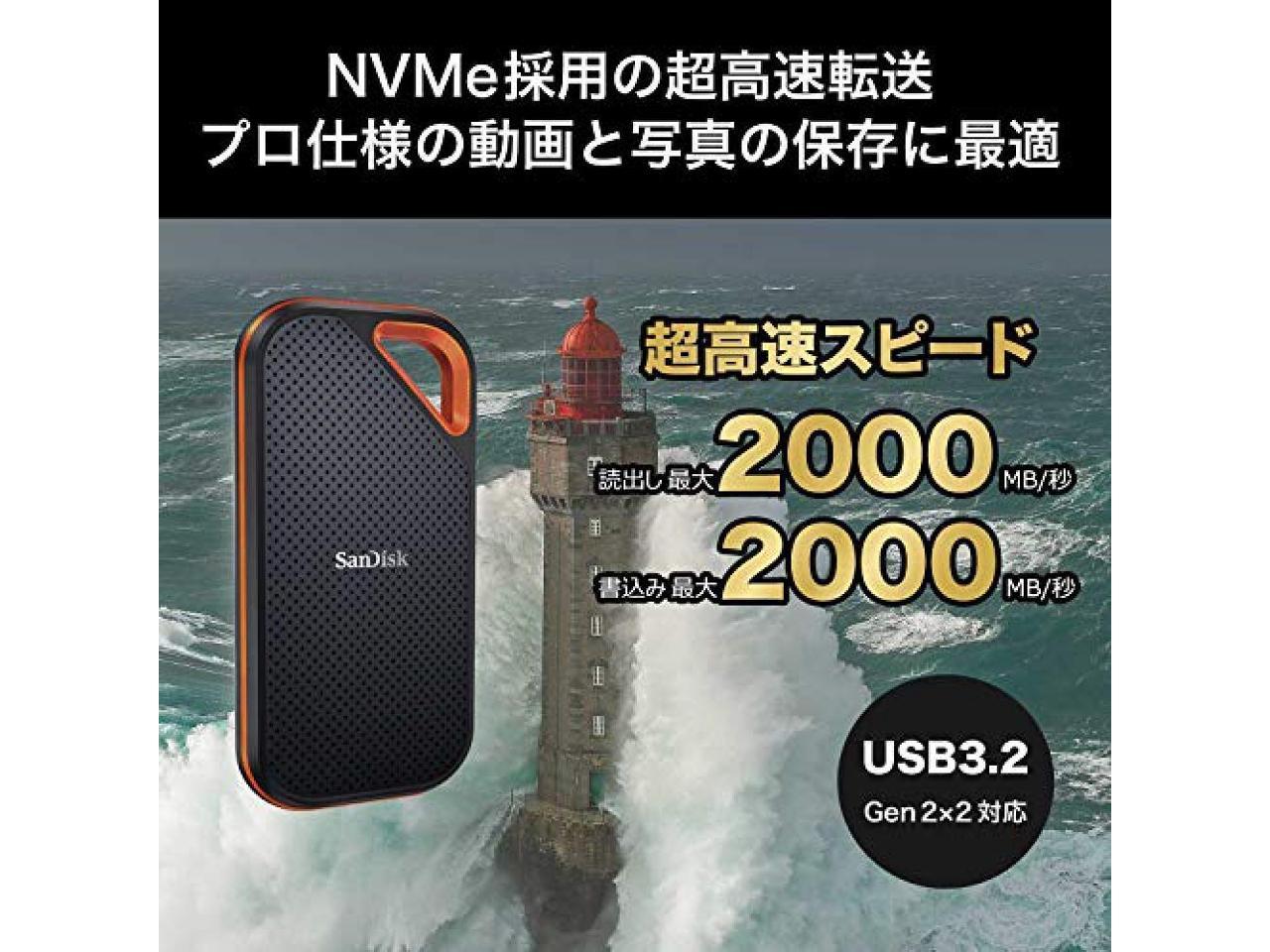 SanDisk SSD External 4TB USB 3.2 Gen 2×2 Up to 2000MB / sec Drip-proof and dust-proof SDSSDE81-4T00-GH25 Extreme Pro Portable SSD V2 Eco Package