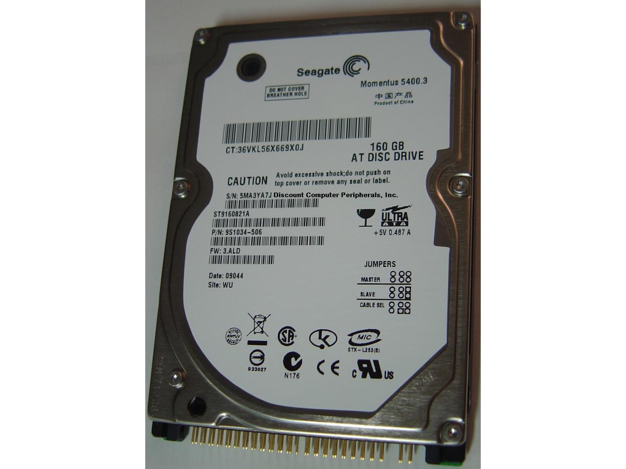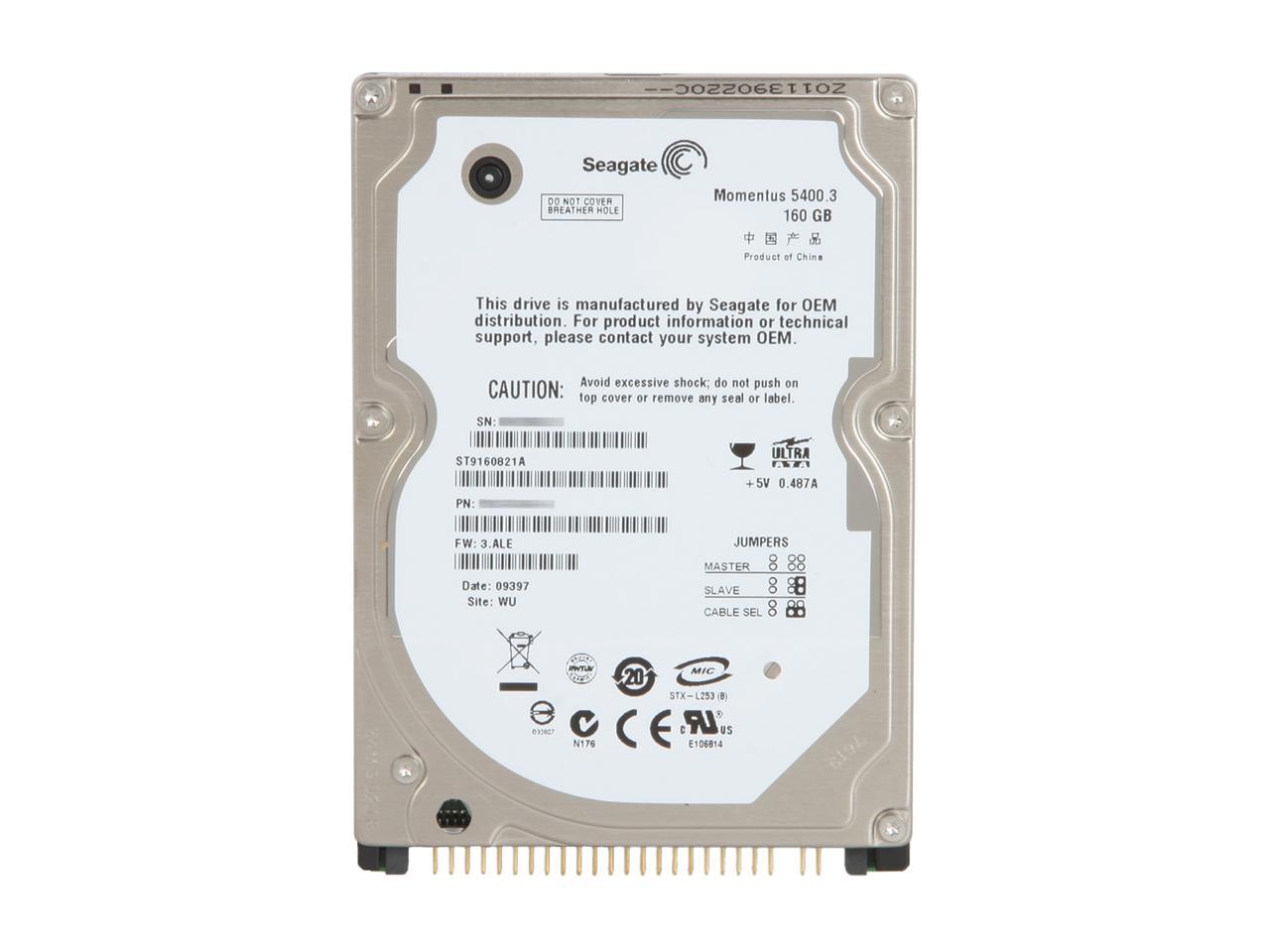 Seagate Momentus 5400.3 ST9160821A 160GB 5400 RPM 8MB Cache IDE Ultra ATA100 / ATA-6 2.5″ Internal Notebook Hard Drive Bare Drive