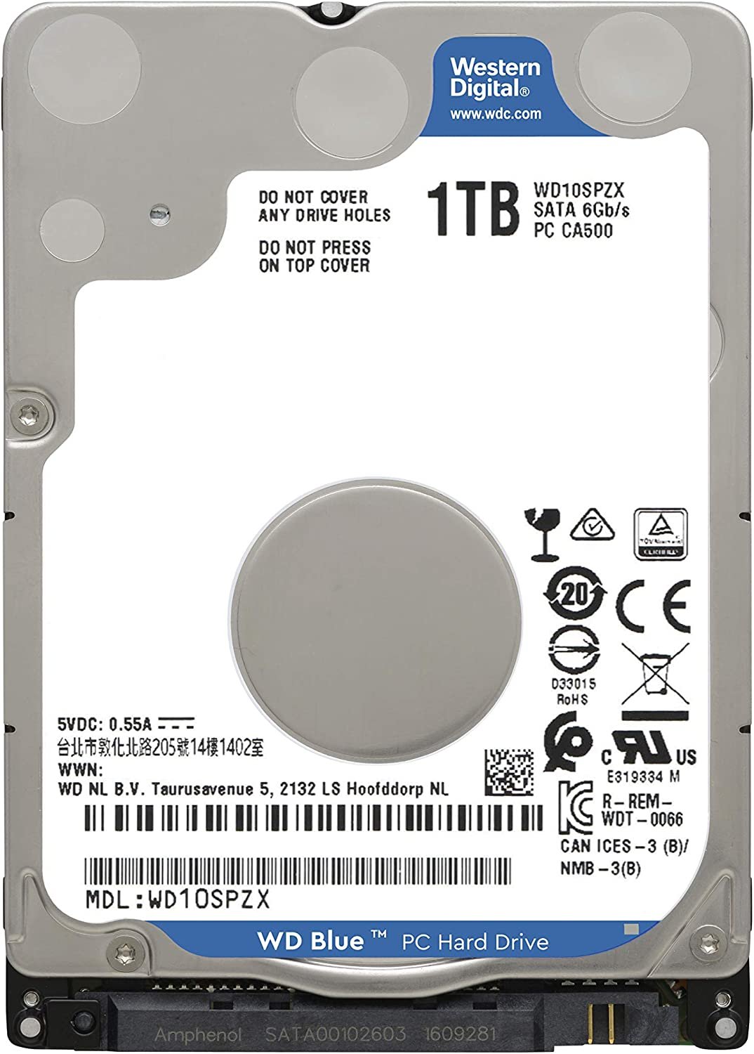 WD Blue 1TB 5400 RPM 128MB Cache SATA 6.0Gb/s 2.5″ Mobile Hard Drive WD10SPZX